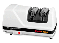 Táto profesionálna dvojstupňová elektrická brúska nožov obsahuje kužeľové kotúče so 100%-ným diamantovým povrchom v prvom stupni a revolučný leštiaci kotúč v druhom stupni. Vytvára počas niekoľkých sekúnd, reznú hranu s nebývalou ostrosťou a trvanlivosťou na rovnom aj zúbkovanom ostrí noža- užite si túto novú leštiacu technológiu, ktorá pri prebrúsení odstraňuje menej kovu ako pri konvenčných prostriedkoch, dokonca menej než ocieľky. Dokonalá uhlová stabilizácia polohy noža vďaka elastomerovým pružinám vyvracia všetky dohady. Rotačný princíp brúsenia pomocou odpružených kotúčov zabezpečuje rovnomerný a optimálny tlak na čepeľ noža nezávislý od obsluhy. Tým nedochádza k prehrievaniu ostria a k neželanému vyžíhaniu a následnej zmene vlastností materiálu čepele.