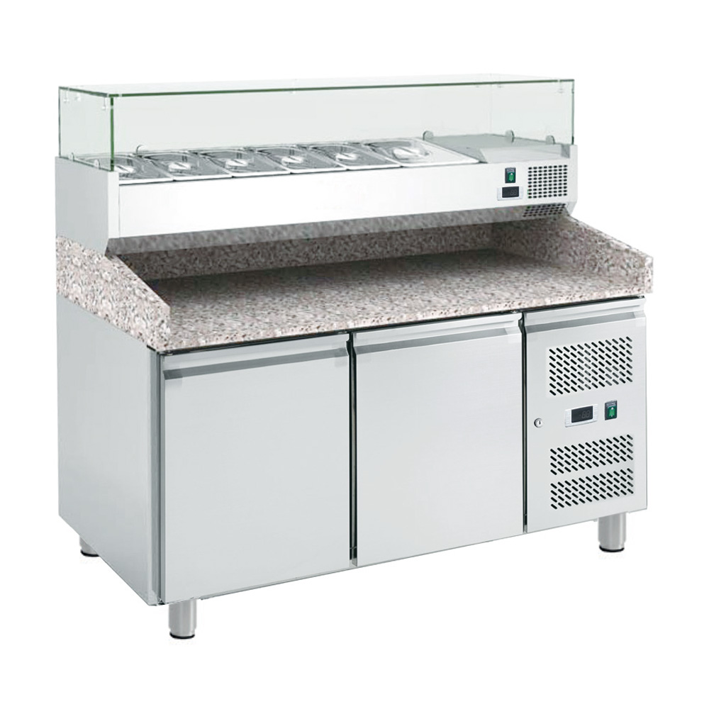 Dvojdverový pizza-stôl vitrínou 7 x GN1/4